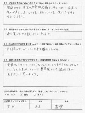 腰痛、左足の座骨神経痛で歩くたびに左足に痛みが走り、