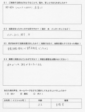 腰の疲れ(ヘルニアによるもの) 首、肩こり