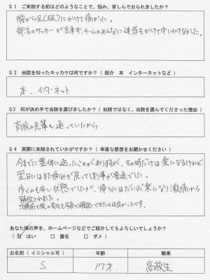 歩くのも辛い状態でしたが、帰りにはだいぶ楽になり激痛から解放されました。
